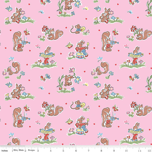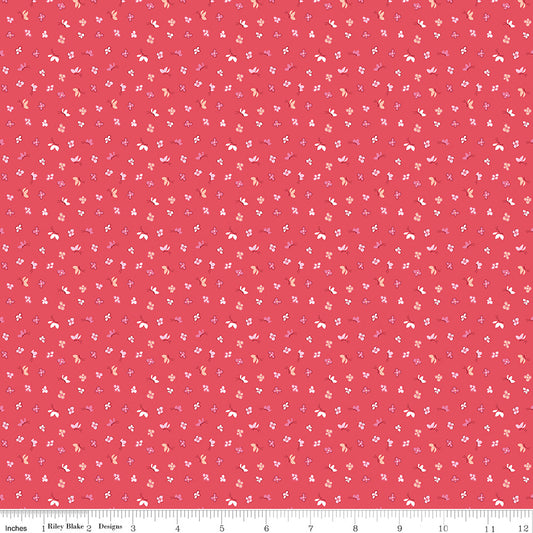 LOVE NOTES Butterfly Floral Raspberry Yardage