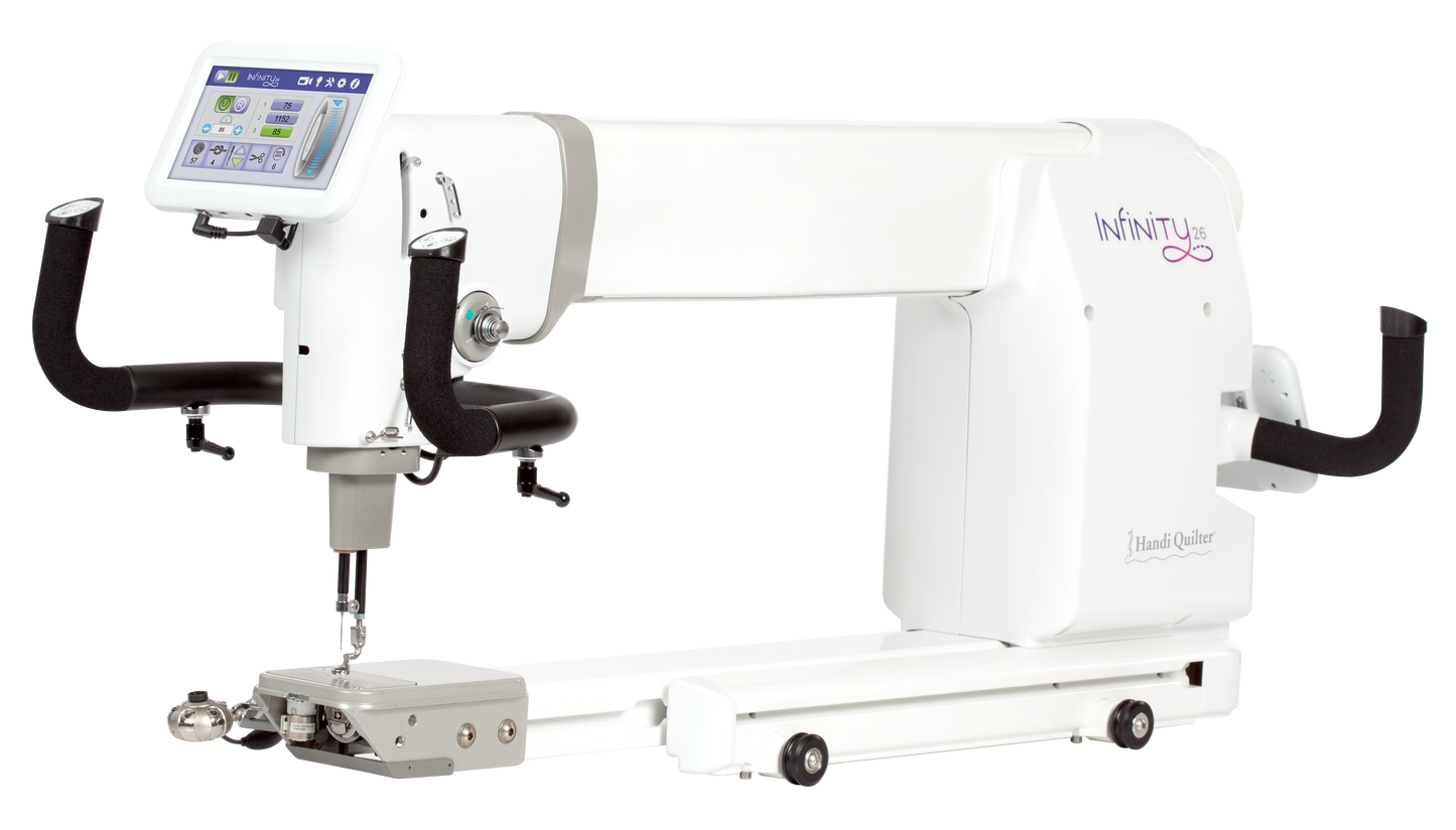 The creative possibilities of quilting are endless. Now, your longarm machine also provides endless opportunities. Introducing the HQ Infinity by Handi Quilter. Innovative features, from stitching speeds up to 3,100 precision stitches per minute to handlebars that can be tailored to how you like to quilt, establish the Infinity as best in class. Customizable settings, programmable presets and intuitive software give the Infinity the ability to work and grow with you.