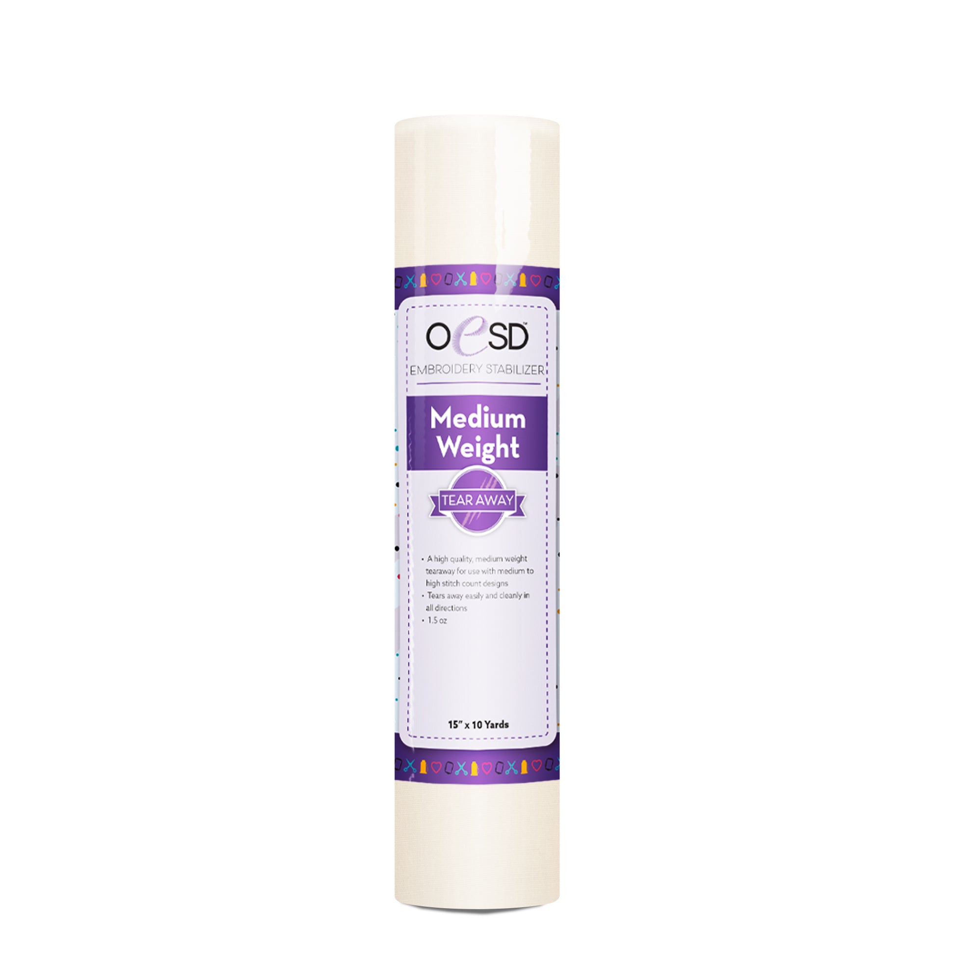 Medium Weight TearAway 15" x 10yds for medium to high stitch count. Removes cleanly and easily.