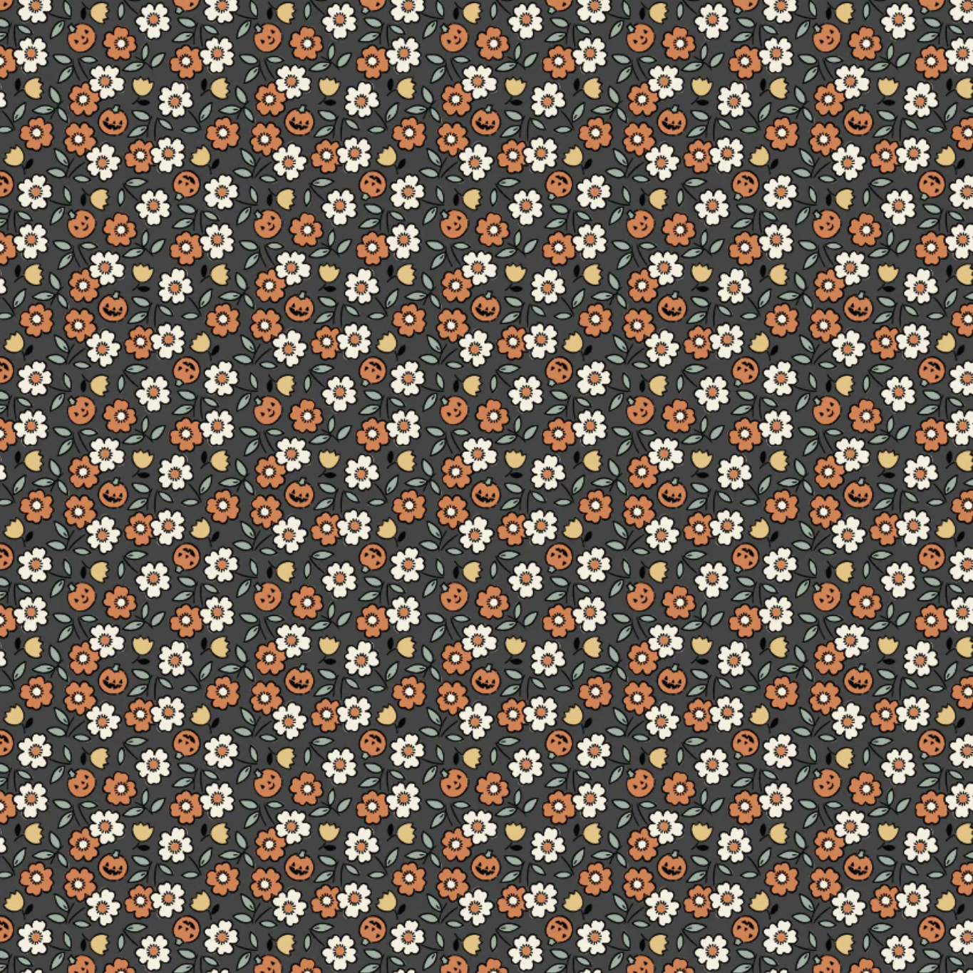 SWEET TOOTH Black Pumpkin Blossoms Yardage